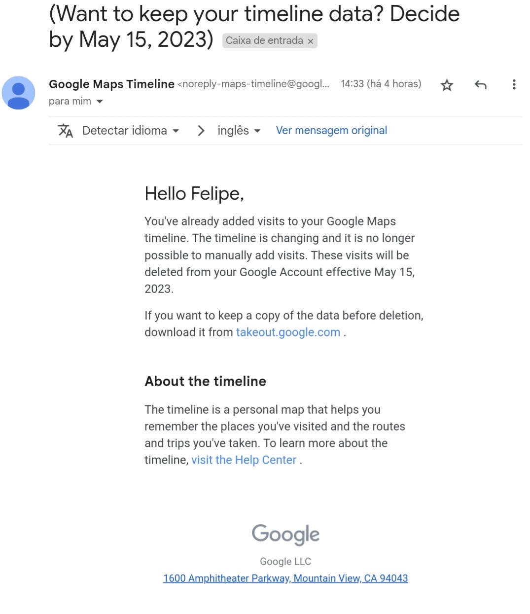 Google Maps Timeline Email